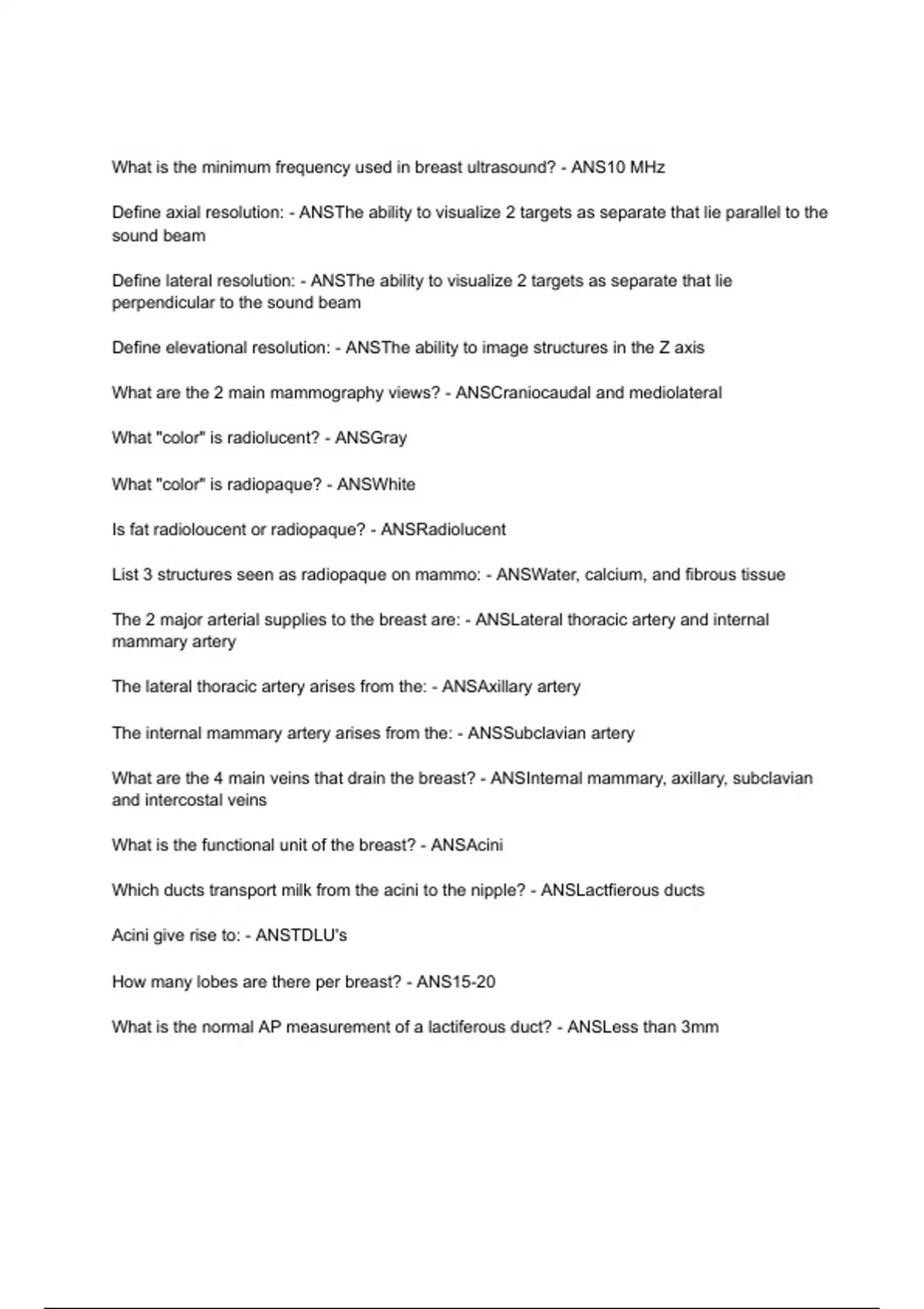 List 3 structures seen as radiopaque on mammo: - ANSWater, calcium, and fibrous tissue