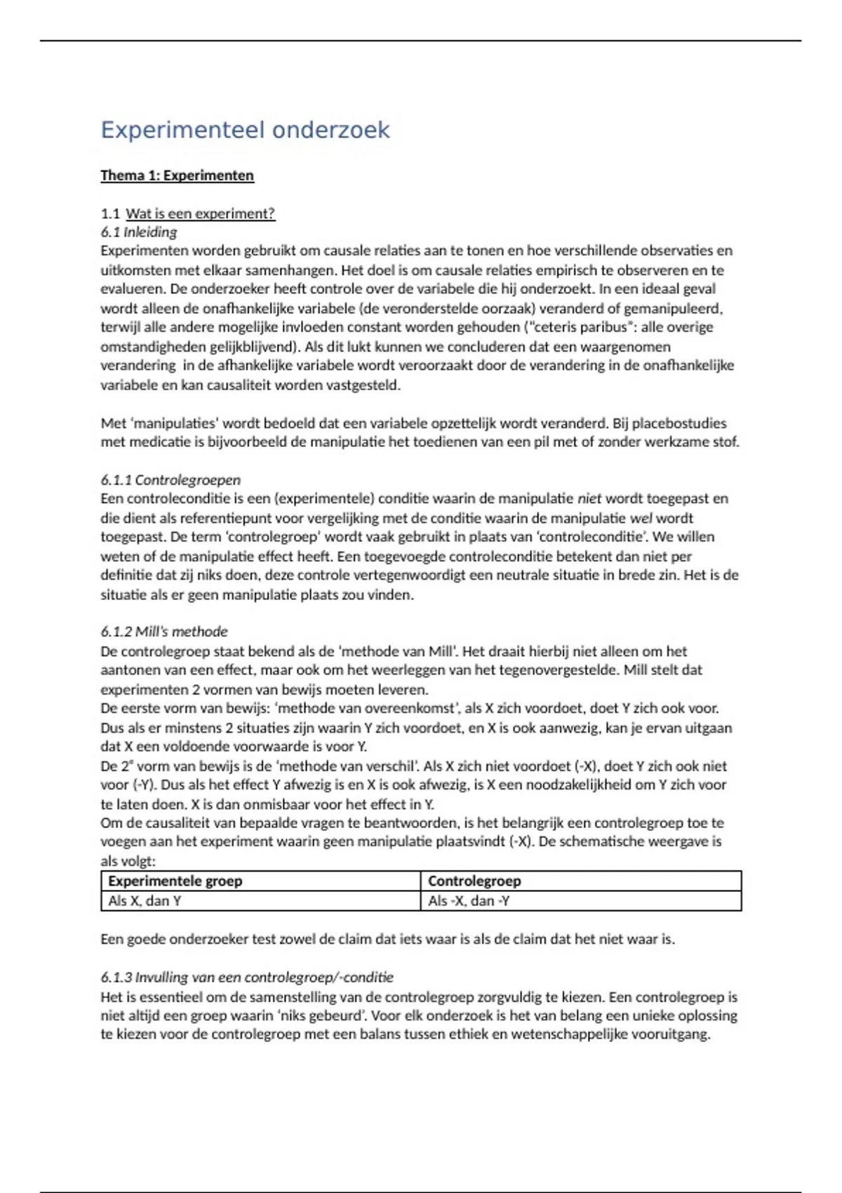experimentele als controlegroep. Bij globale controle wordt geprobeerd om de kenmerken van