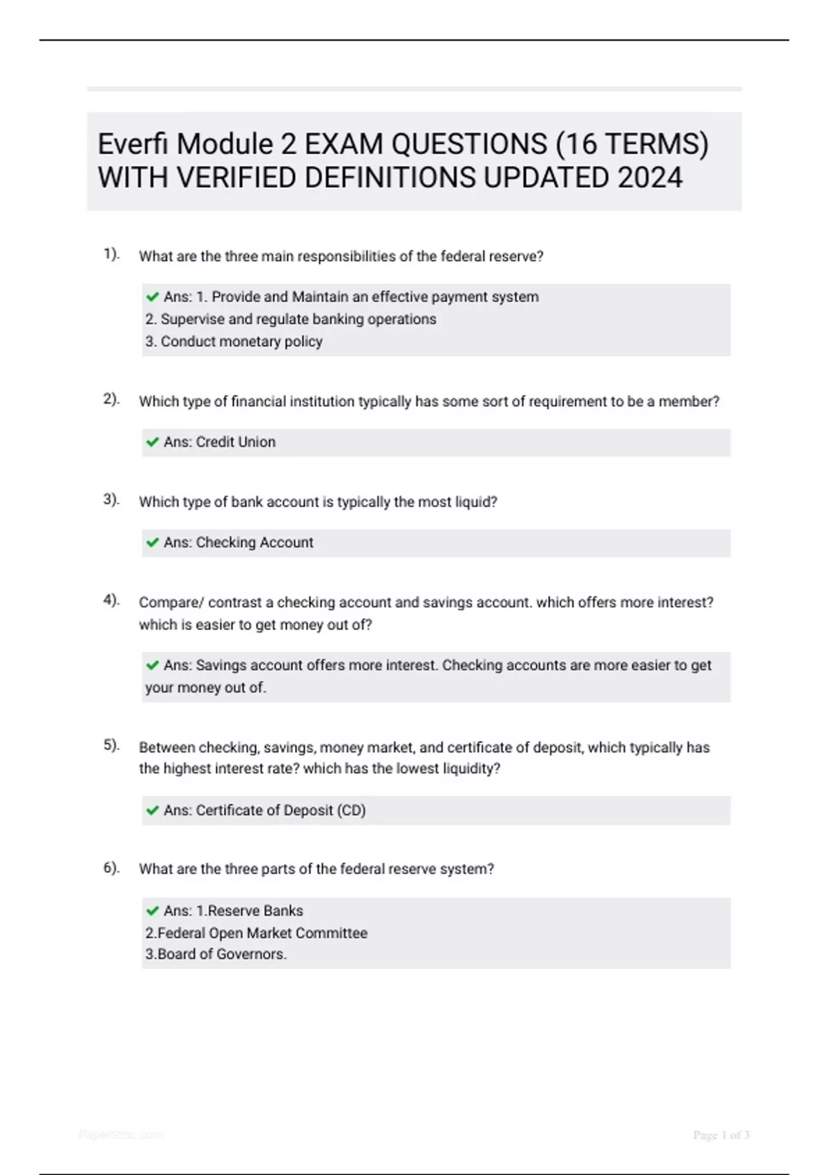 3). Which type of bank account is typically the most liquid?