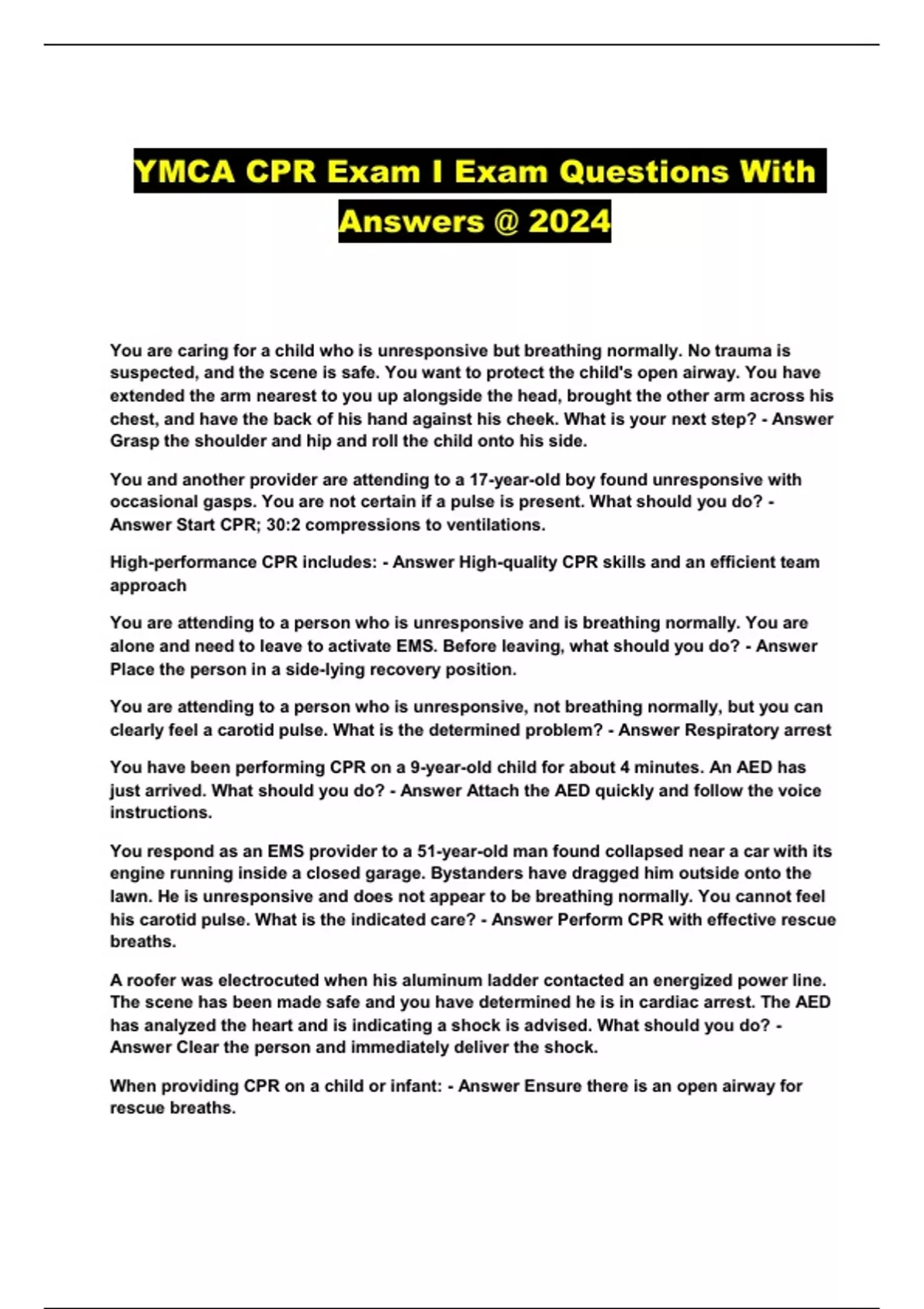 YMCA CPR Exam I Exam Questions With Answers @ 2024...