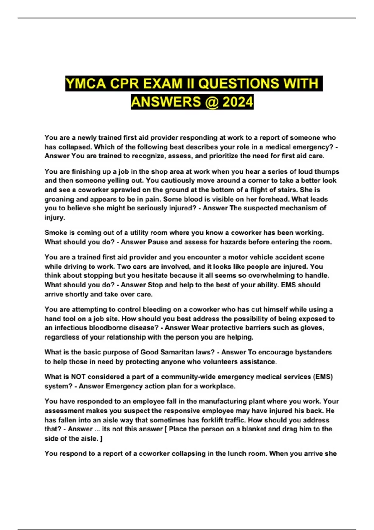 YMCA CPR EXAM II QUESTIONS WITH ANSWERS @ 2024...