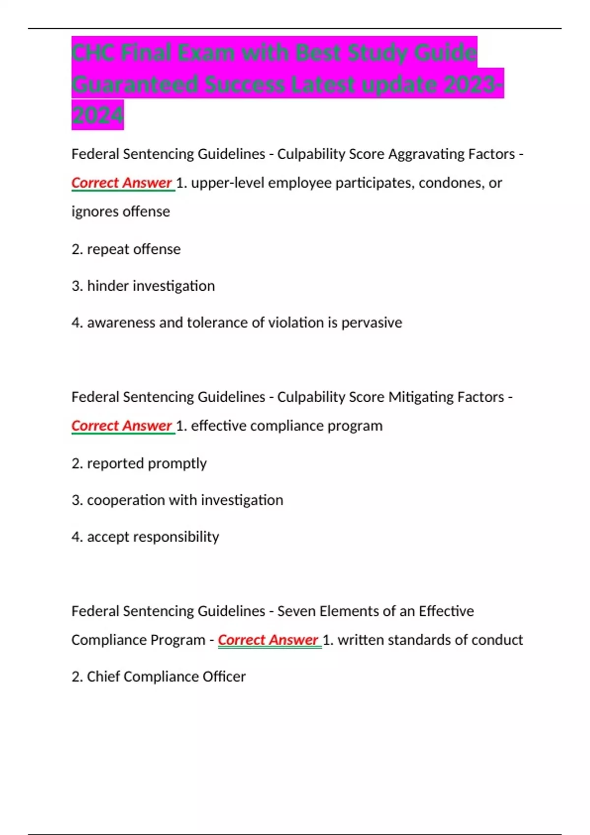 CHC Final Exam with Best Study Guide Guaranteed Success Latest update
