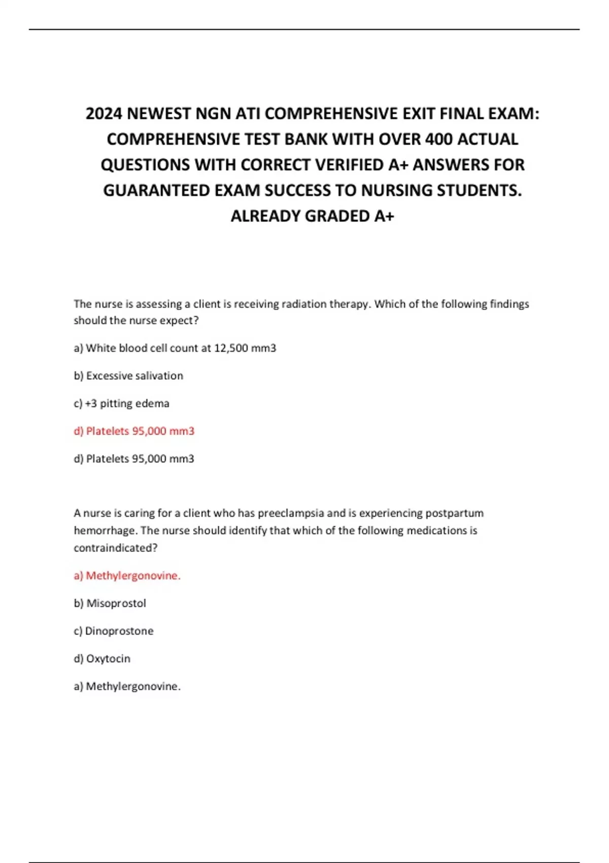 COMPREHENSIVE TEST BANK WITH OVER 400 ACTUAL