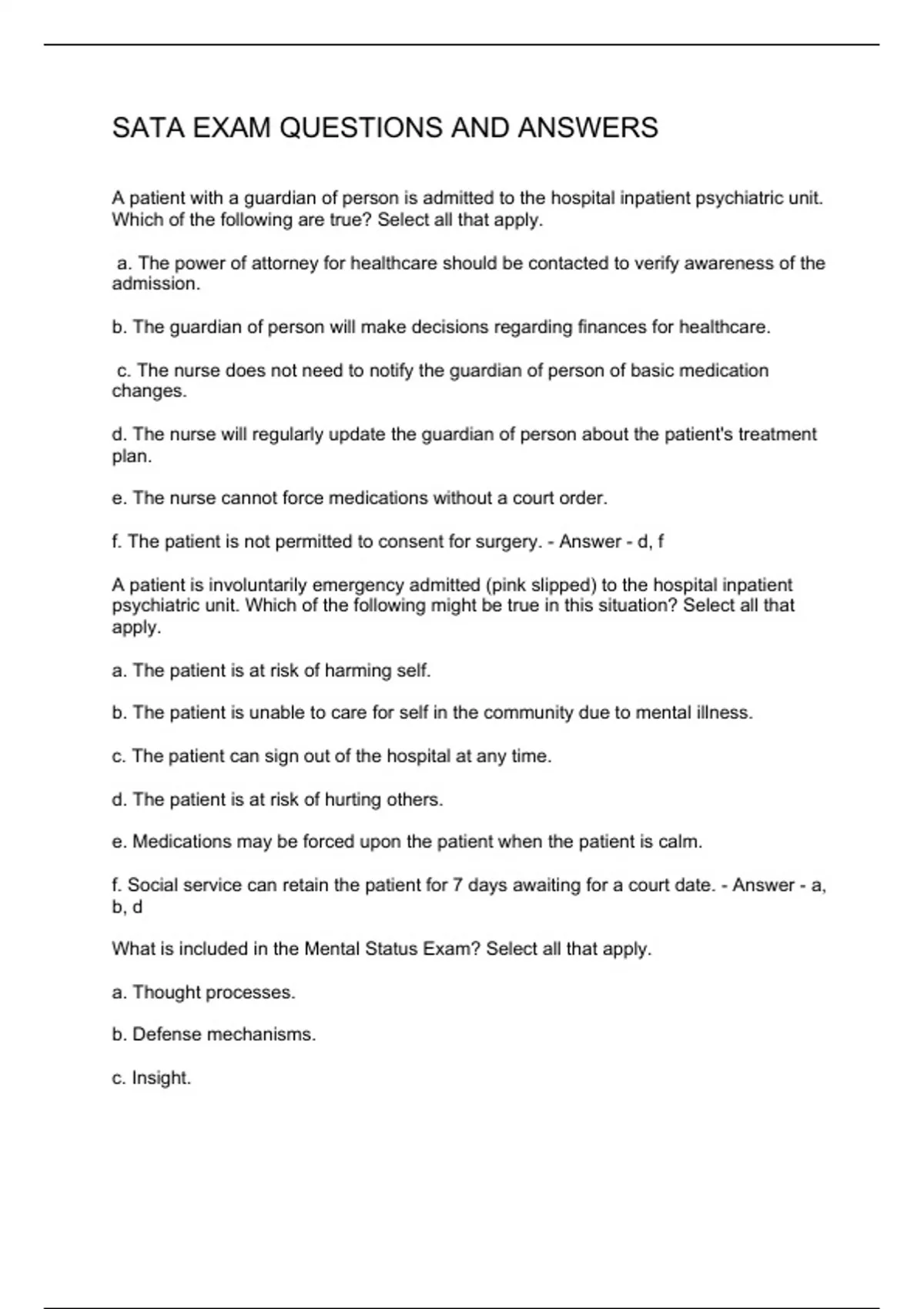 SATA EXAM QUESTIONS AND ANSWERS