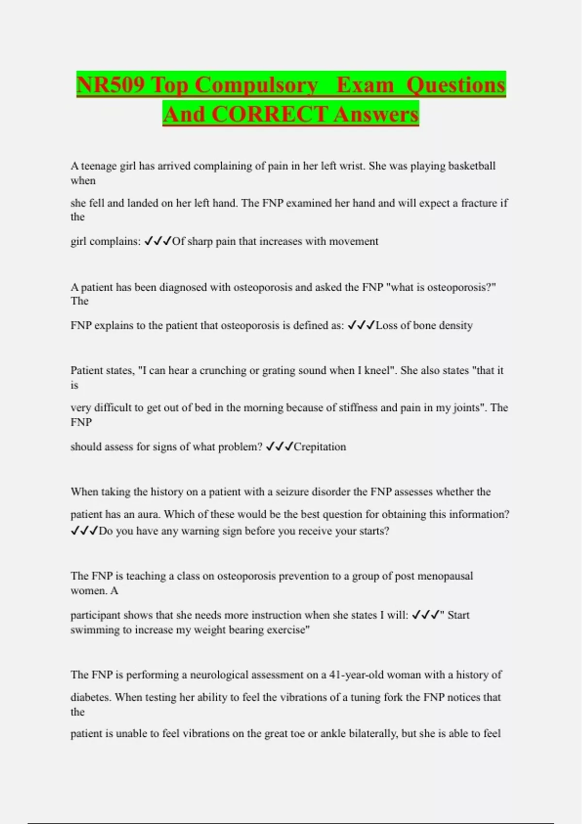 NR509 Top Compulsory Exam Questions And CORRECT Answers