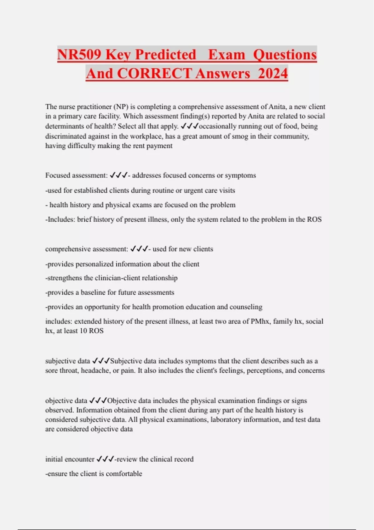 NR509 Key Predicted Exam Questions And CORRECT Answers 2024