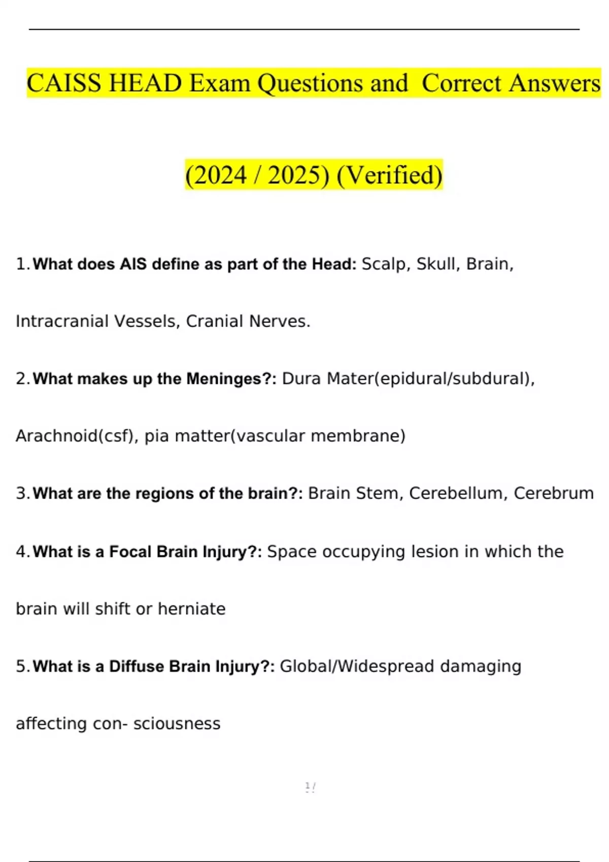 CAISS HEAD Exam Questions and Answers (2024 / 2025) (Verified Answers)