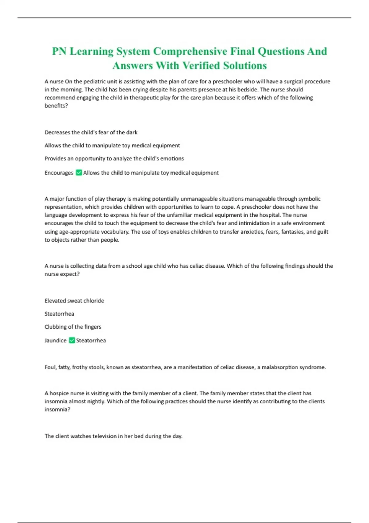PN Learning System Comprehensive Final Questions And Answers With Verified Solutions PN Learning System Comprehensive Final Questions And Answers With Verified Solutions