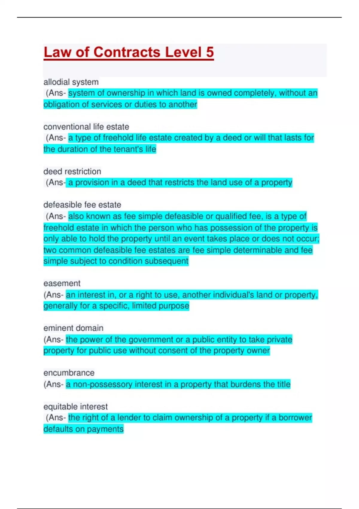 Law of Contracts Level 5: Updated A+ Score Guide