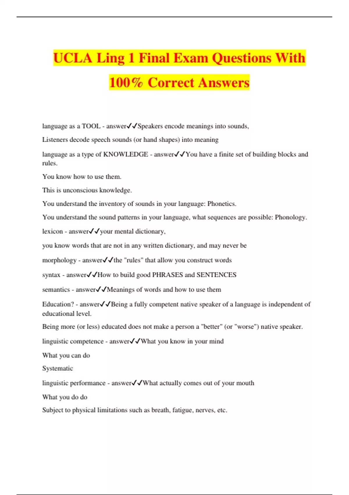 UCLA Ling 1 Final Exam Questions With 100% Correct Answers