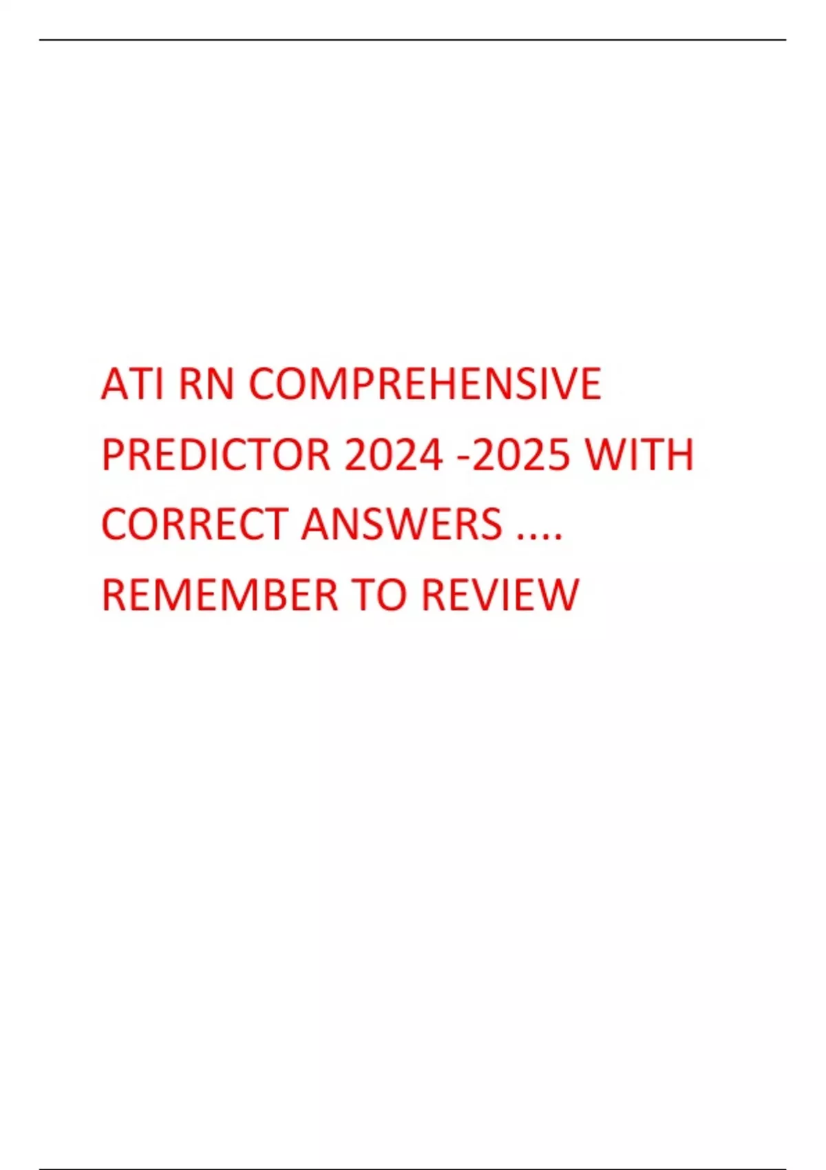 ATI RN COMPREHENSIVE PREDICTOR WITH CORRECT ANSWERS .... REMEMBER TO REVIEW