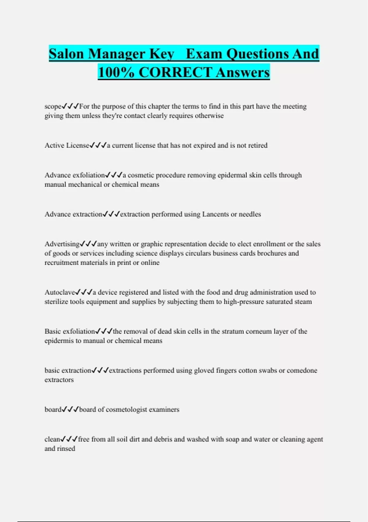 Salon Manager Key Exam Questions And 100% CORRECT Answers