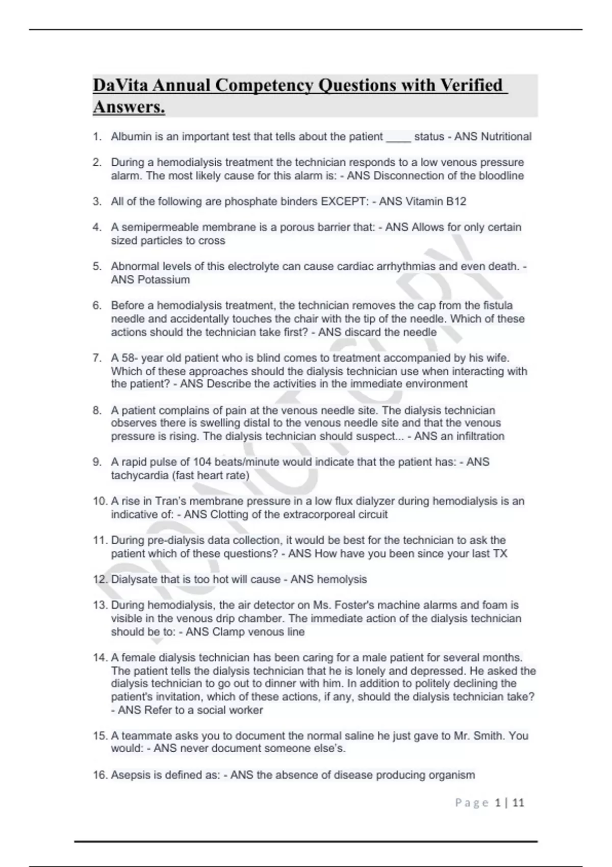 11. During pre-dialysis data collection, it would be best for the technician to ask the