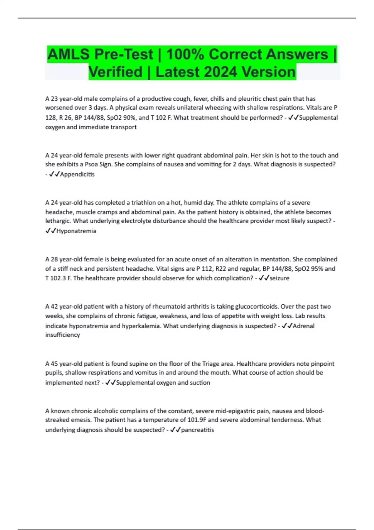 amls pre test 100 correct answer