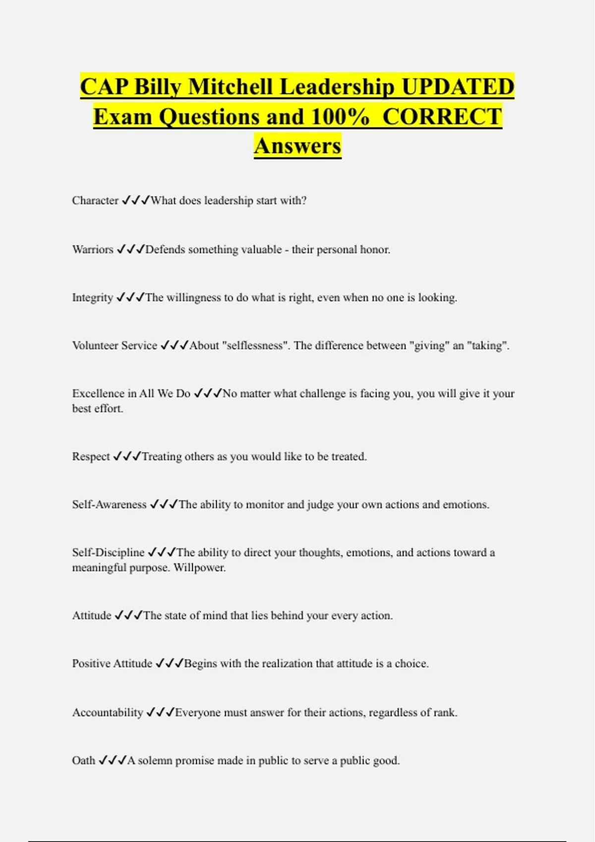 CAP Billy Mitchell Leadership UPDATED Exam Questions and 100% CORRECT Answers