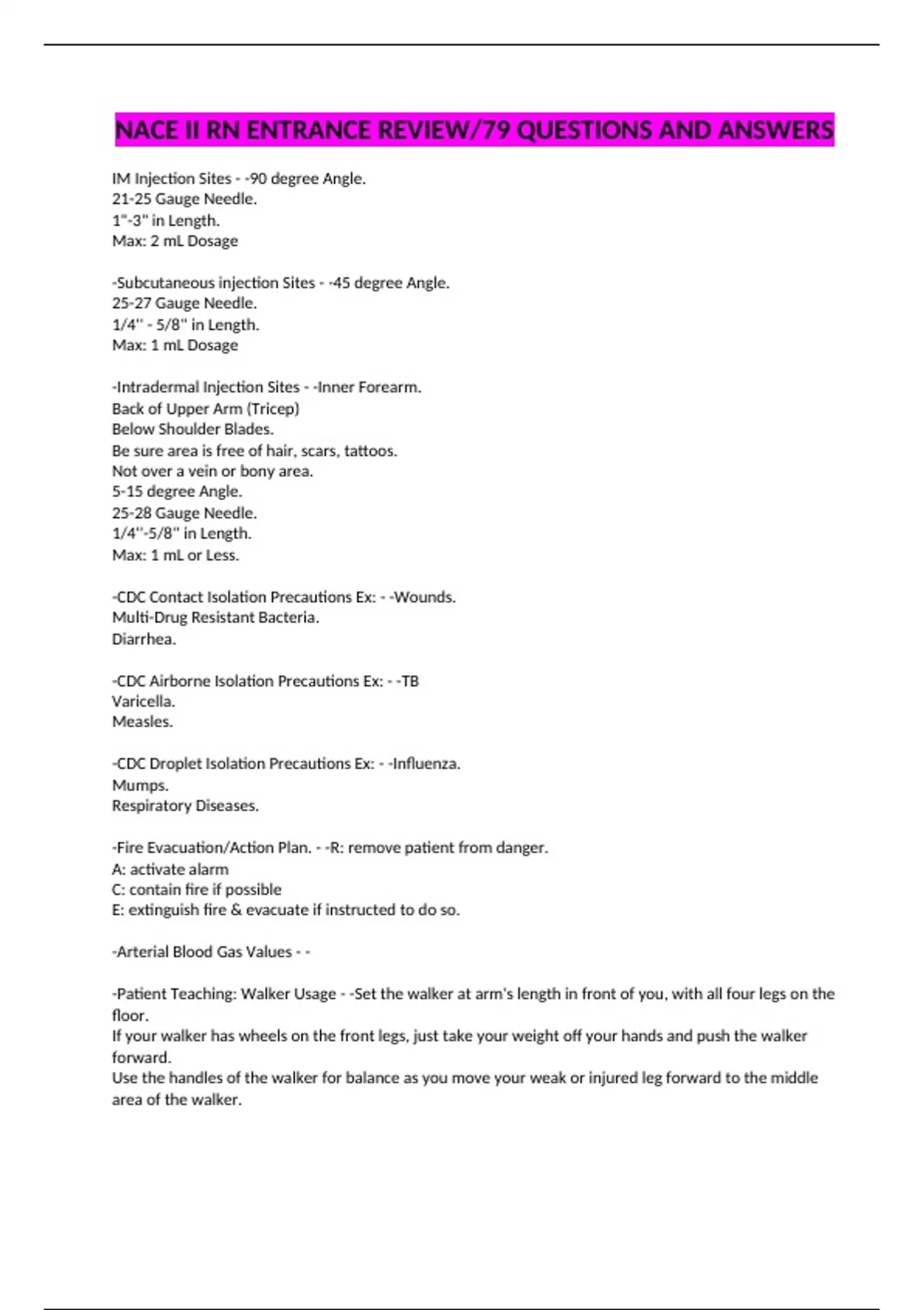 NACE II RN ENTRANCE REVIEW/79 QUESTIONS AND ANSWERS