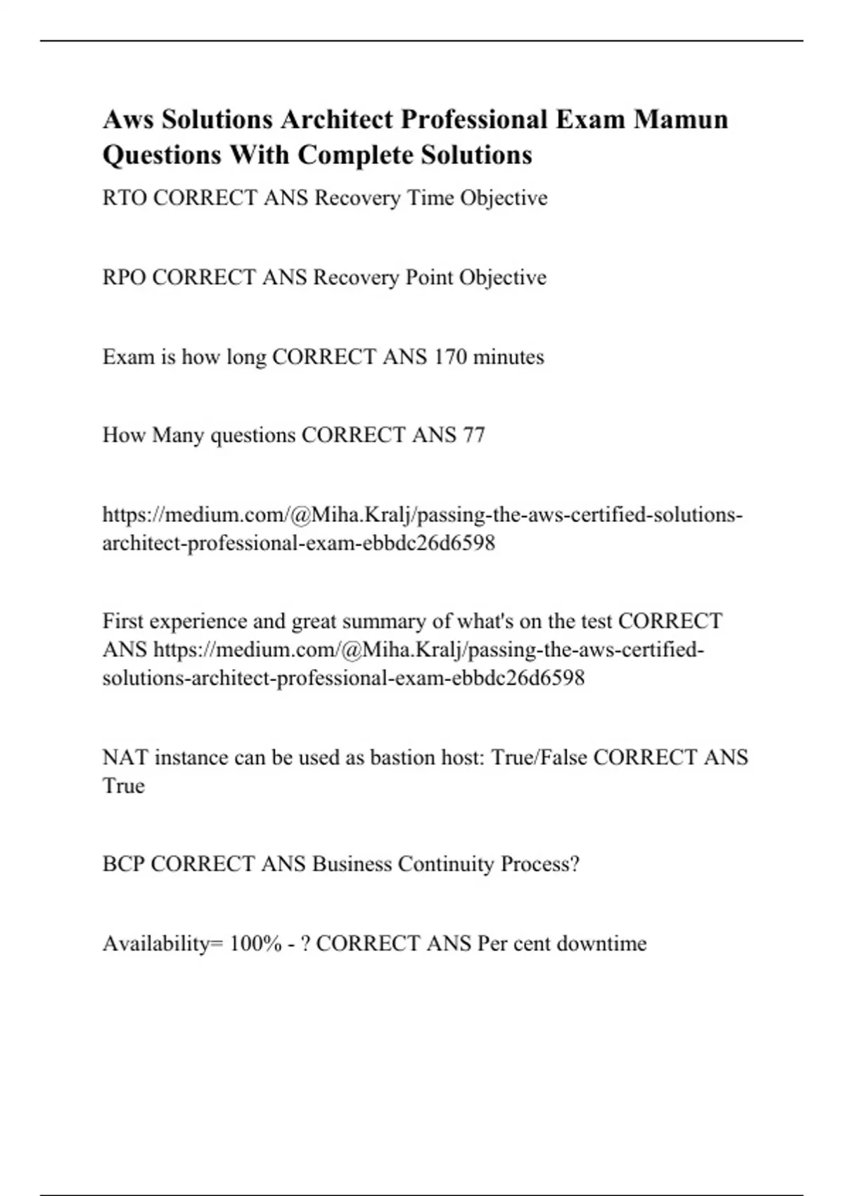 Aws Solutions Architect Professional Exam Mamun Questions With Complete Solutions