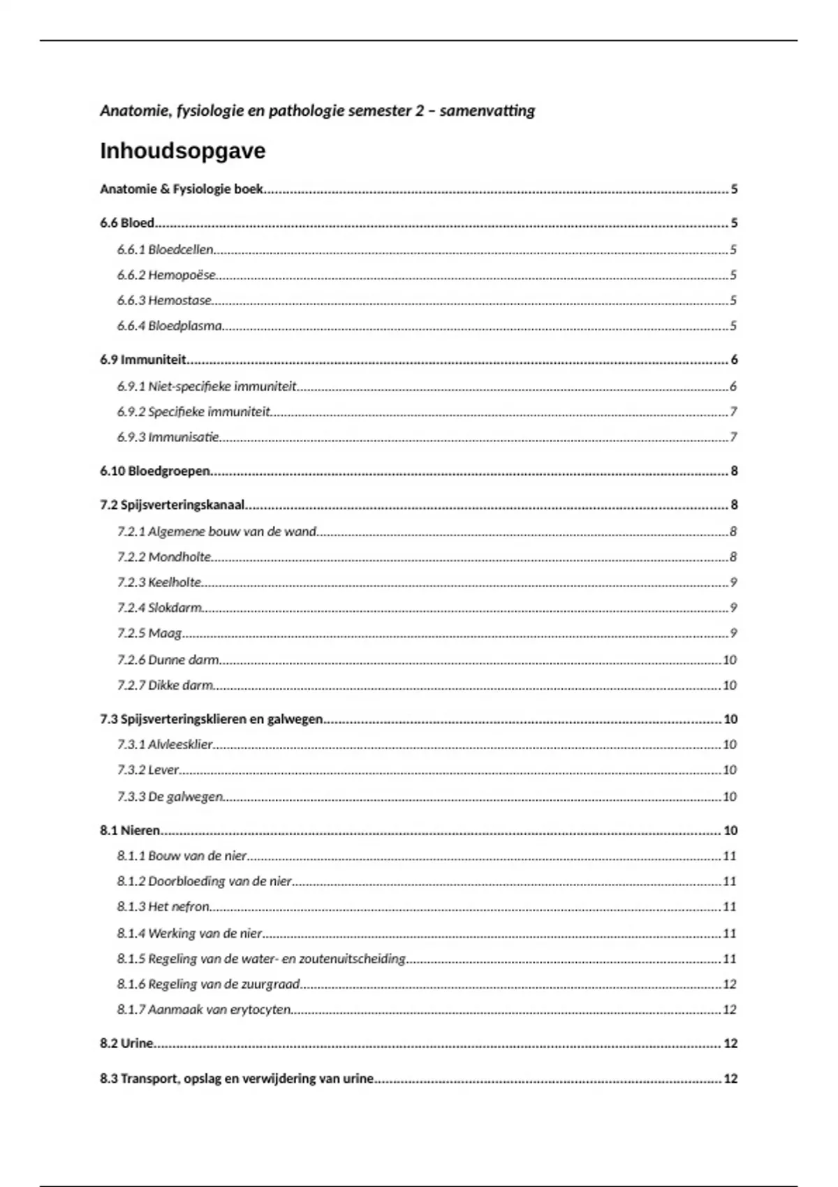 Anatomie, fysiologie en pathologie samenvatting semester 2 leerjaar 1