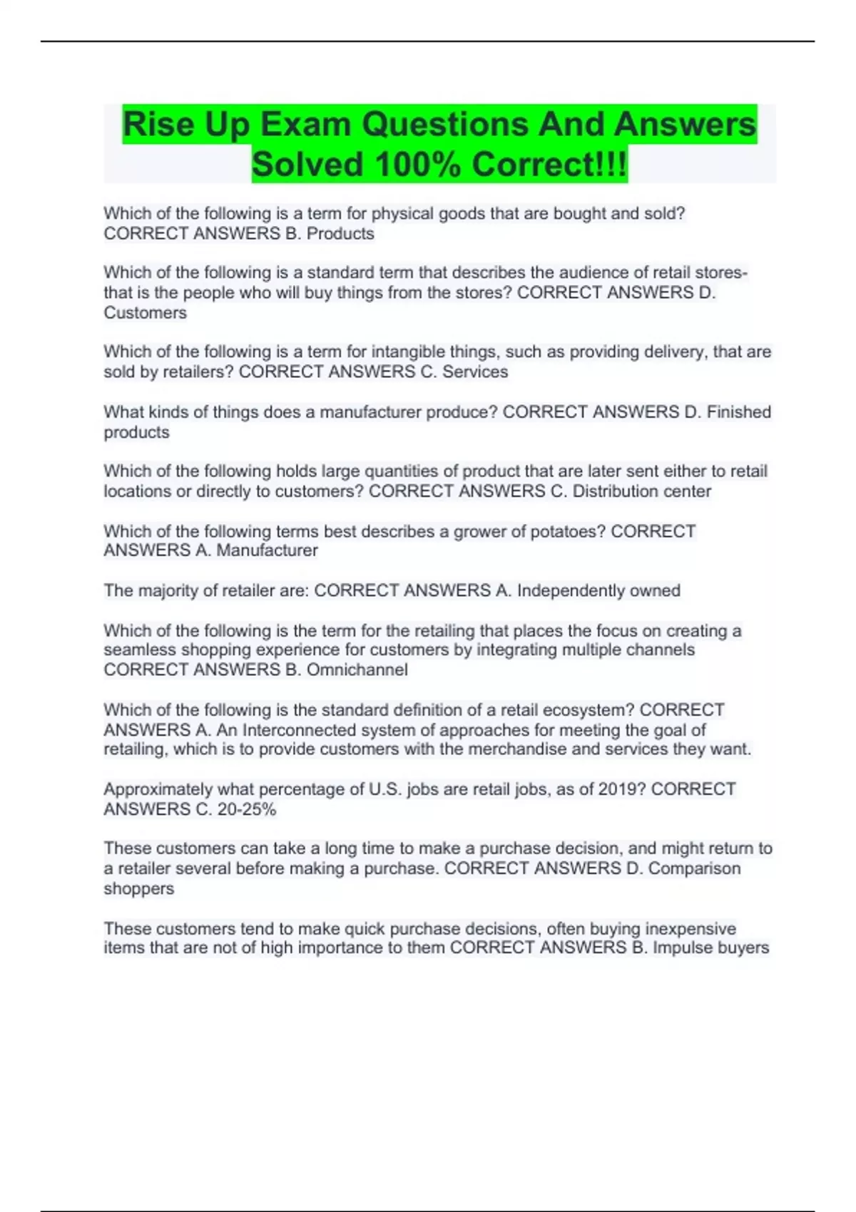 rise up exam questions and answers solved 100 cor