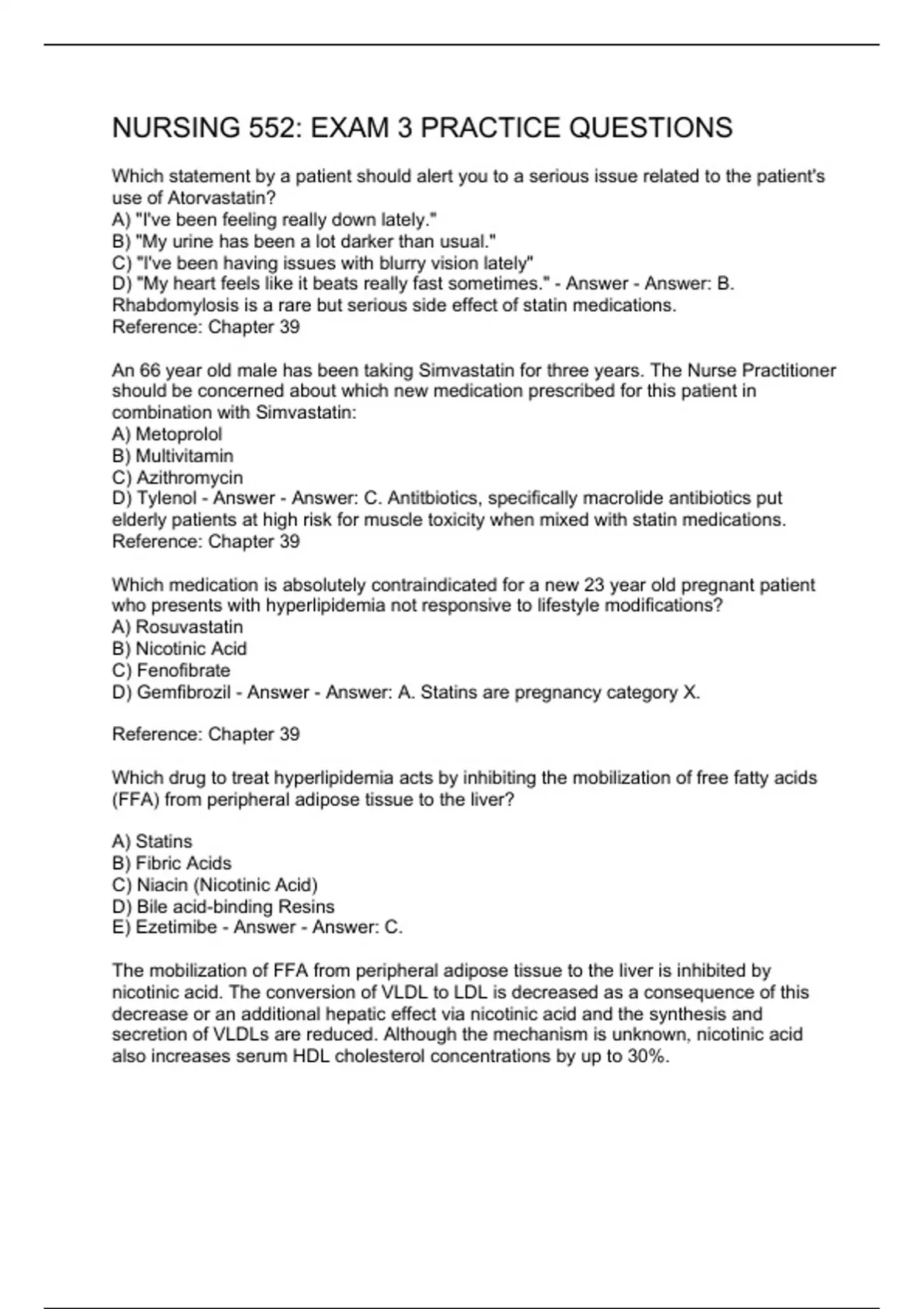 NURSING 552: EXAM 3 PRACTICE QUESTIONS