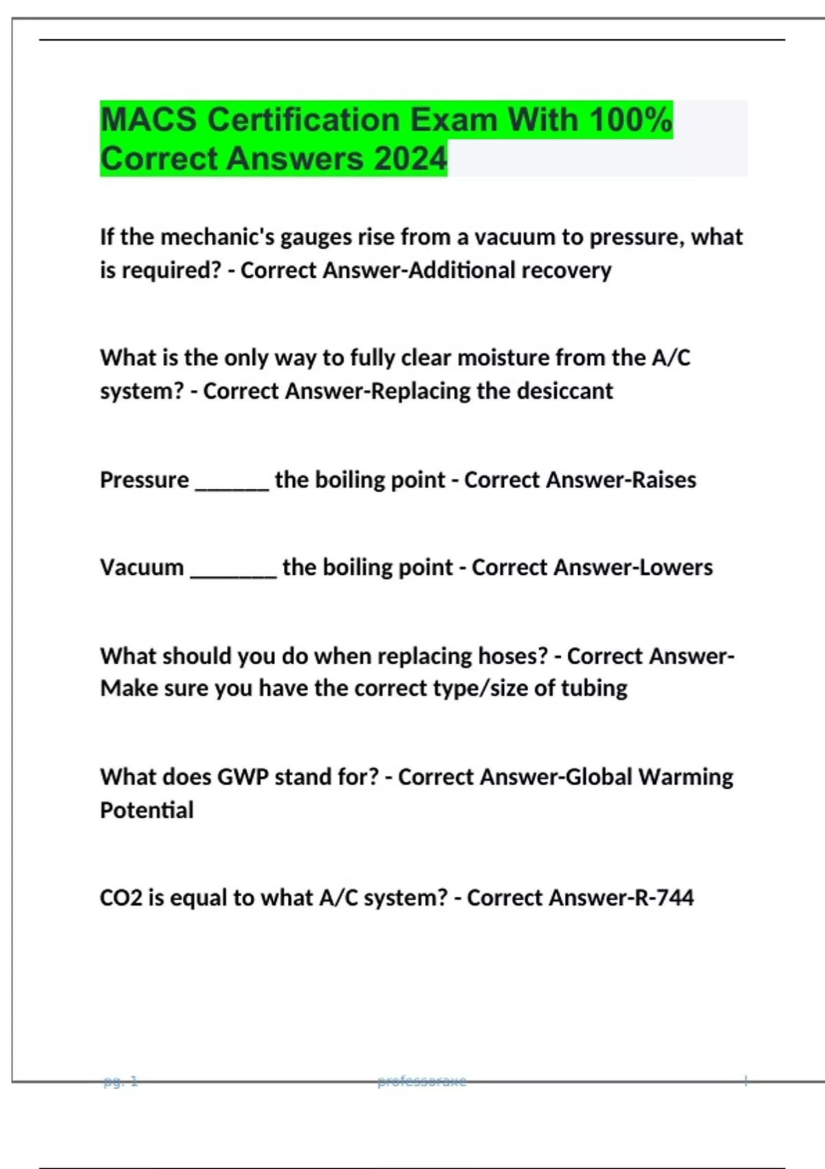 Direct Expansion - Correct Answer-Refrigerant directly expands within the evaporator that is located inside the passenger compartment pg. 2 professoraxe l