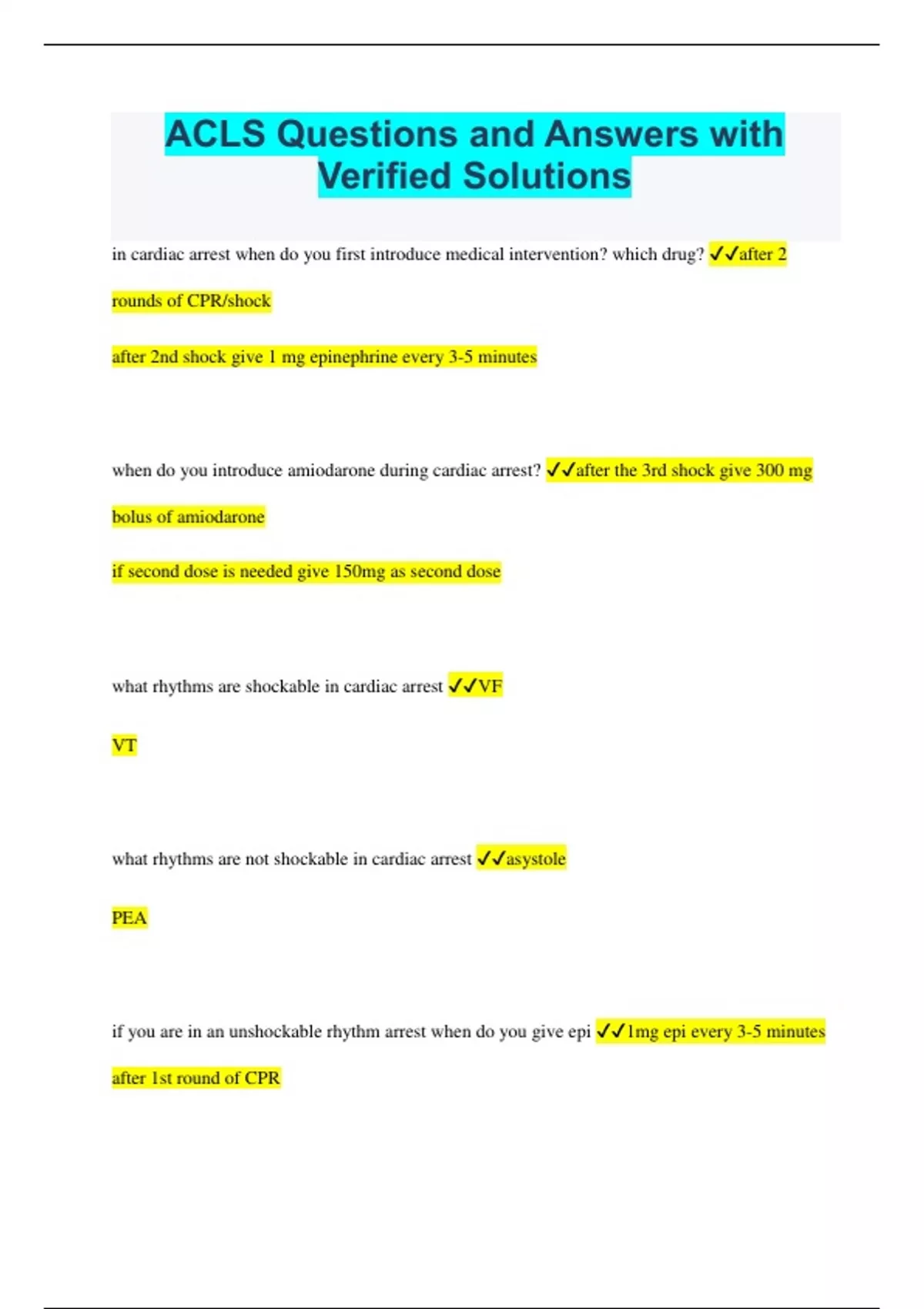 ACLS Questions and Answers with Verified Solutions