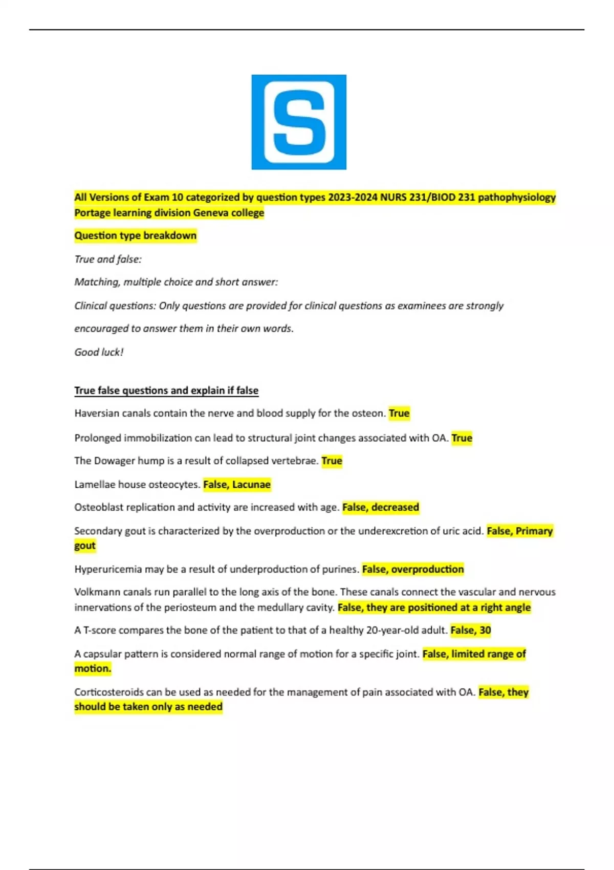 True false questions and explain if false