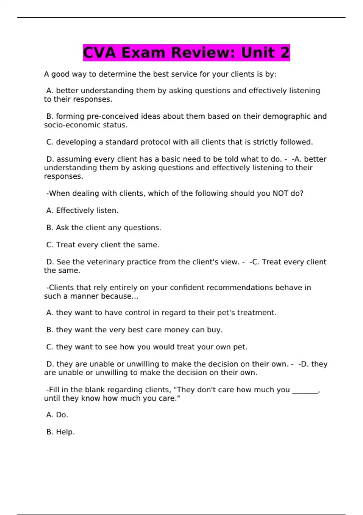 CVA Exam Review: Unit 2
