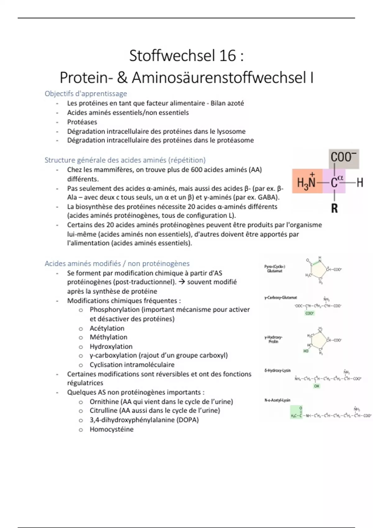 - Chez les mammifères, on trouve plus de 600 acides aminés (AA)