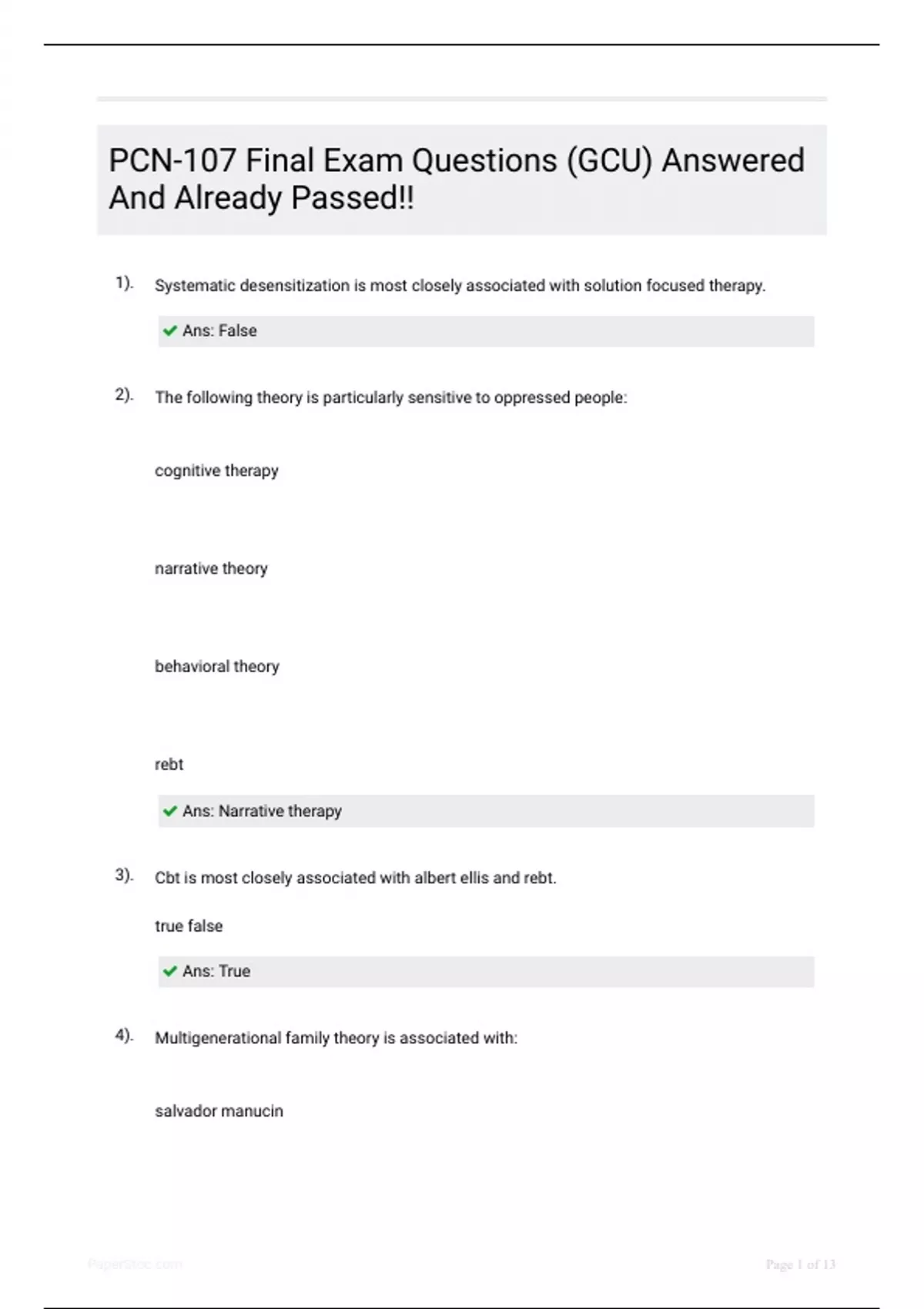1). Systematic desensitization is most closely associated with solution focused therapy.