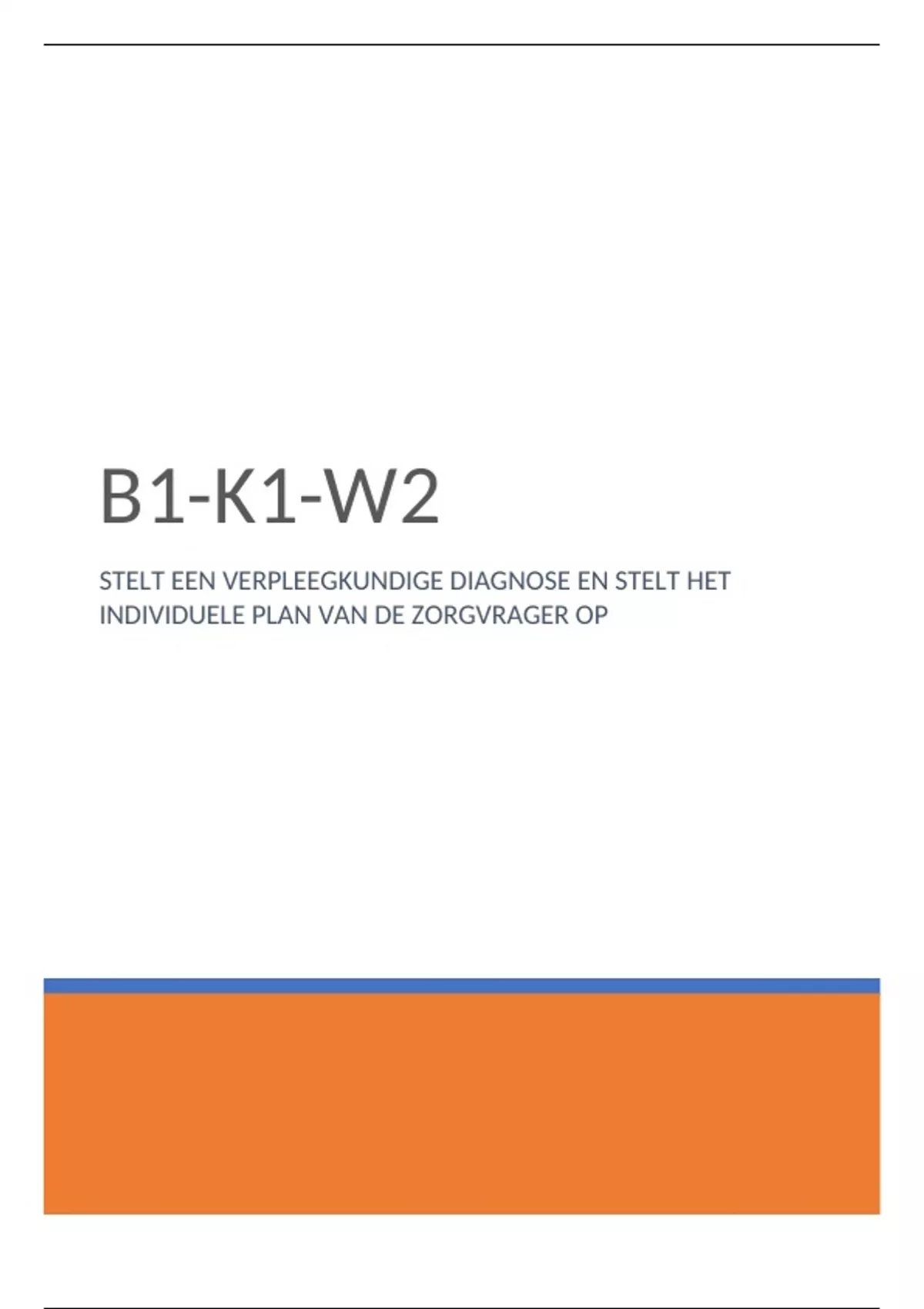 examenverslag verpleegkunde ( stelt een verpleegkundige diagnose en stelt het individuele plan van de zorgvrager op )