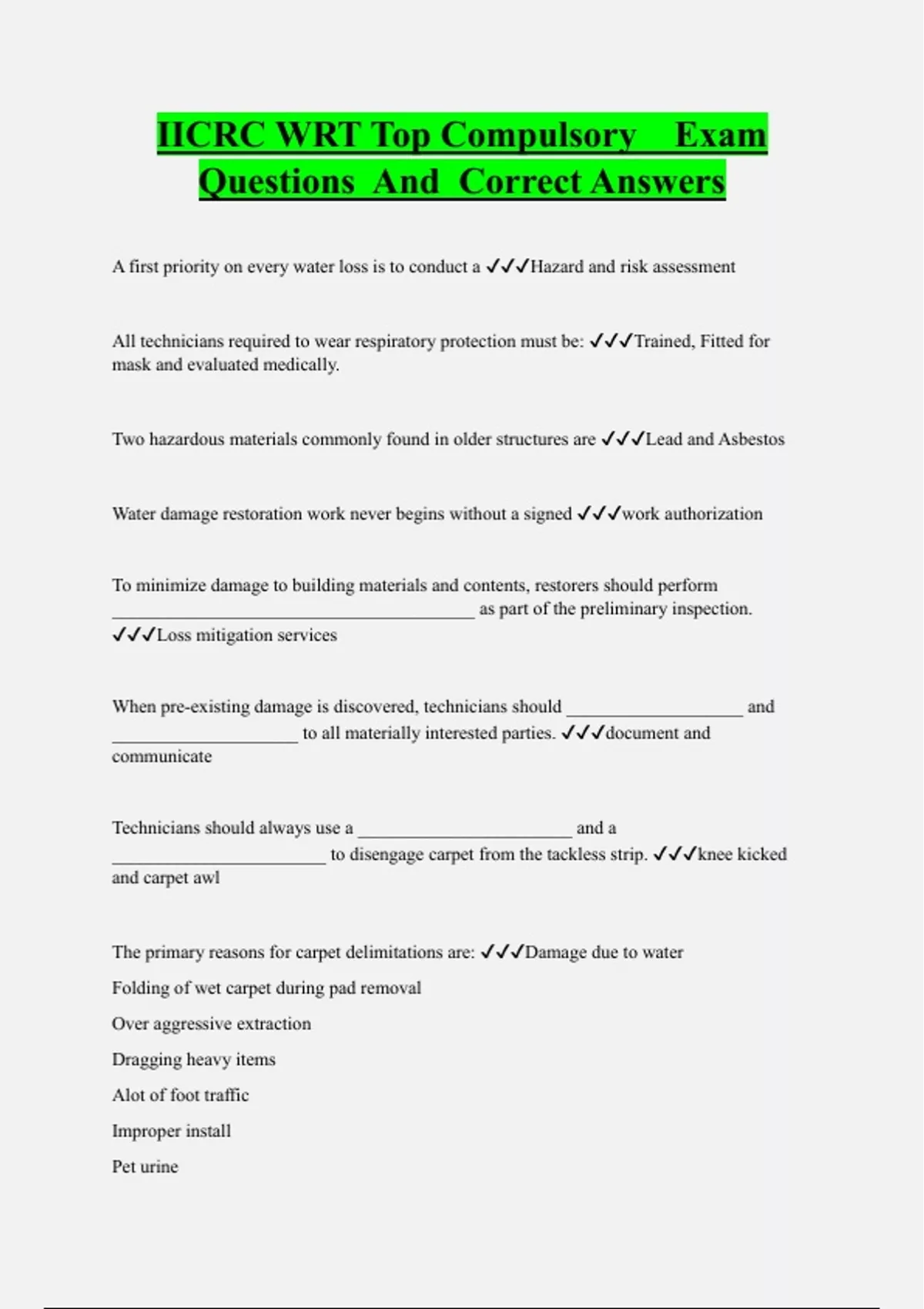 IICRC WRT Top Compulsory Exam Questions And Correct Answers