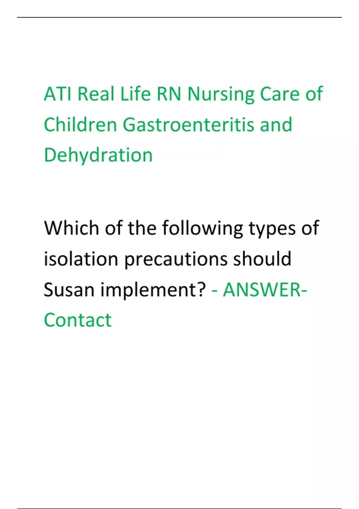 ATI Real Life RN Nursing Care of Children Gastroenteritis and Dehydration