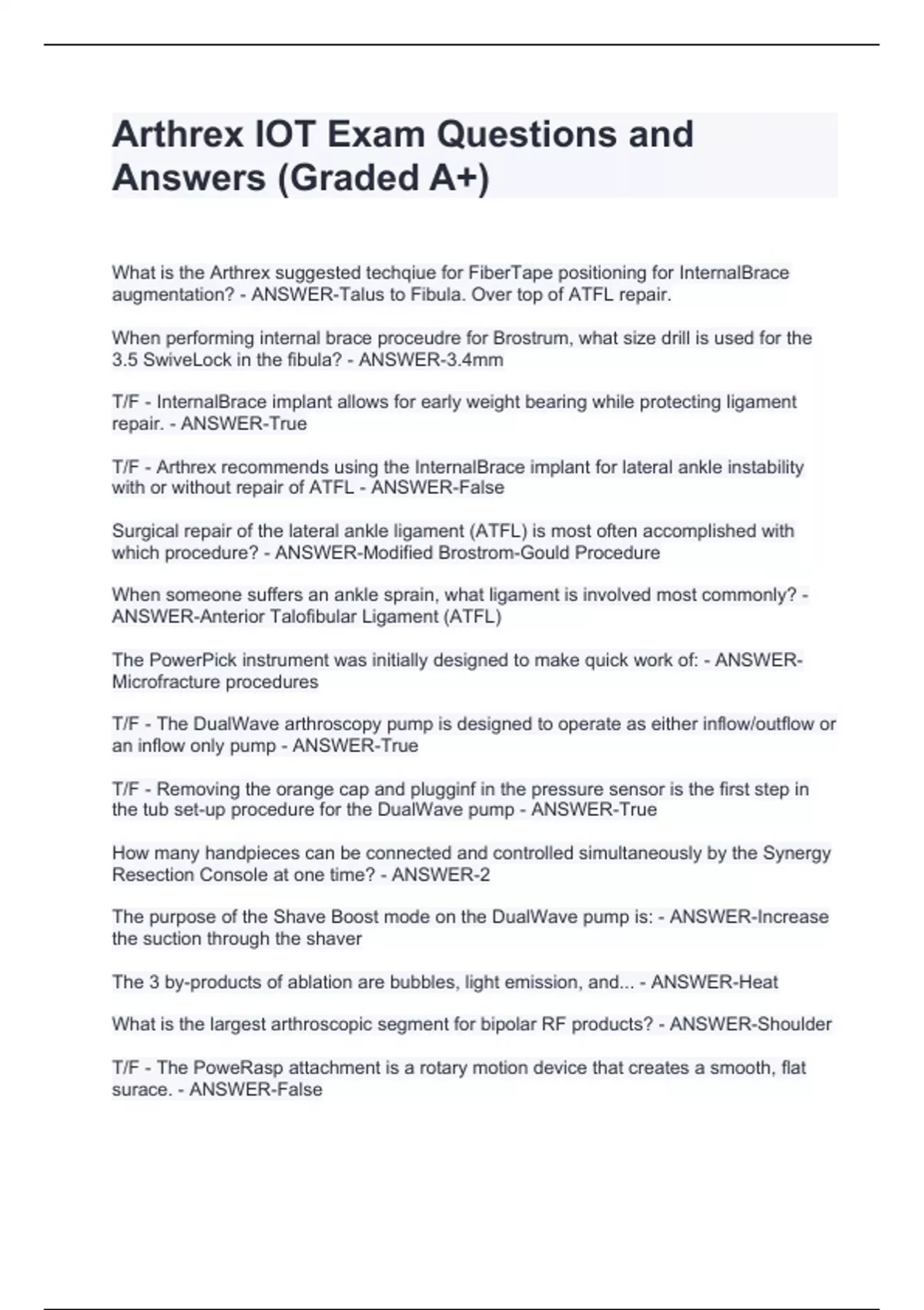 Arthrex IOT Exam Questions and Answers (Graded A+)