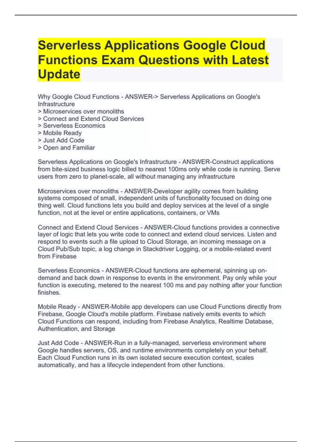 Serverless Applications Google Cloud Functions Exam Questions with Latest Update