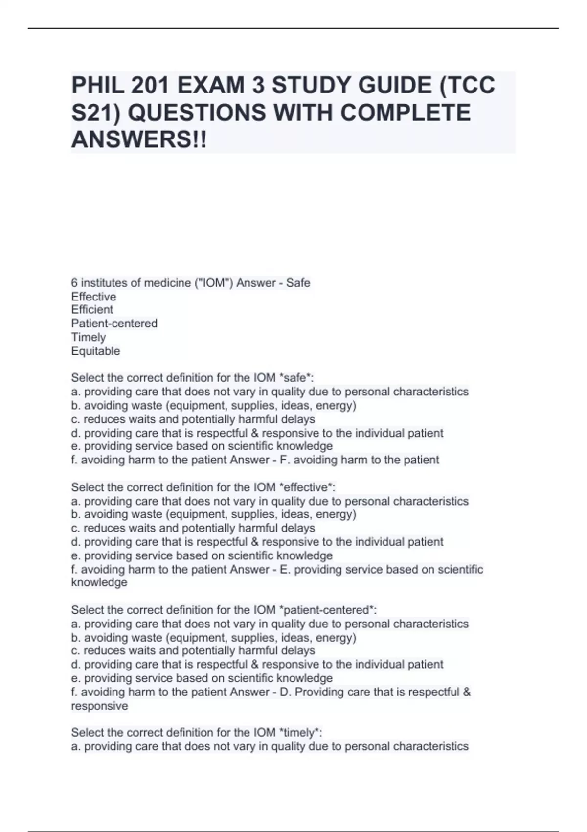 PHIL 201 EXAM 3 STUDY GUIDE (TCC S21) QUESTIONS WITH COMPLETE ANSWERS!!