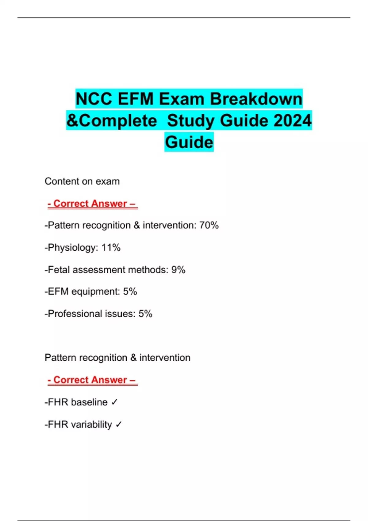 BUNDLE for NCC EFM | EFM NCC 2024 (NCC Electronic Fetal Monitoring Certification Exam) Questions and Answers Graded A+ Latest 2024
