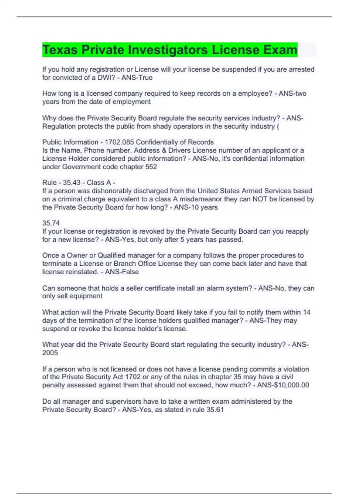 Texas Private Investigators License Exam
