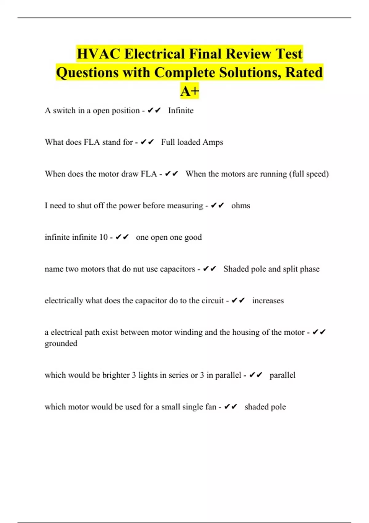 HVAC Electrical Final Review Test Questions with Complete Solutions, Rated A+