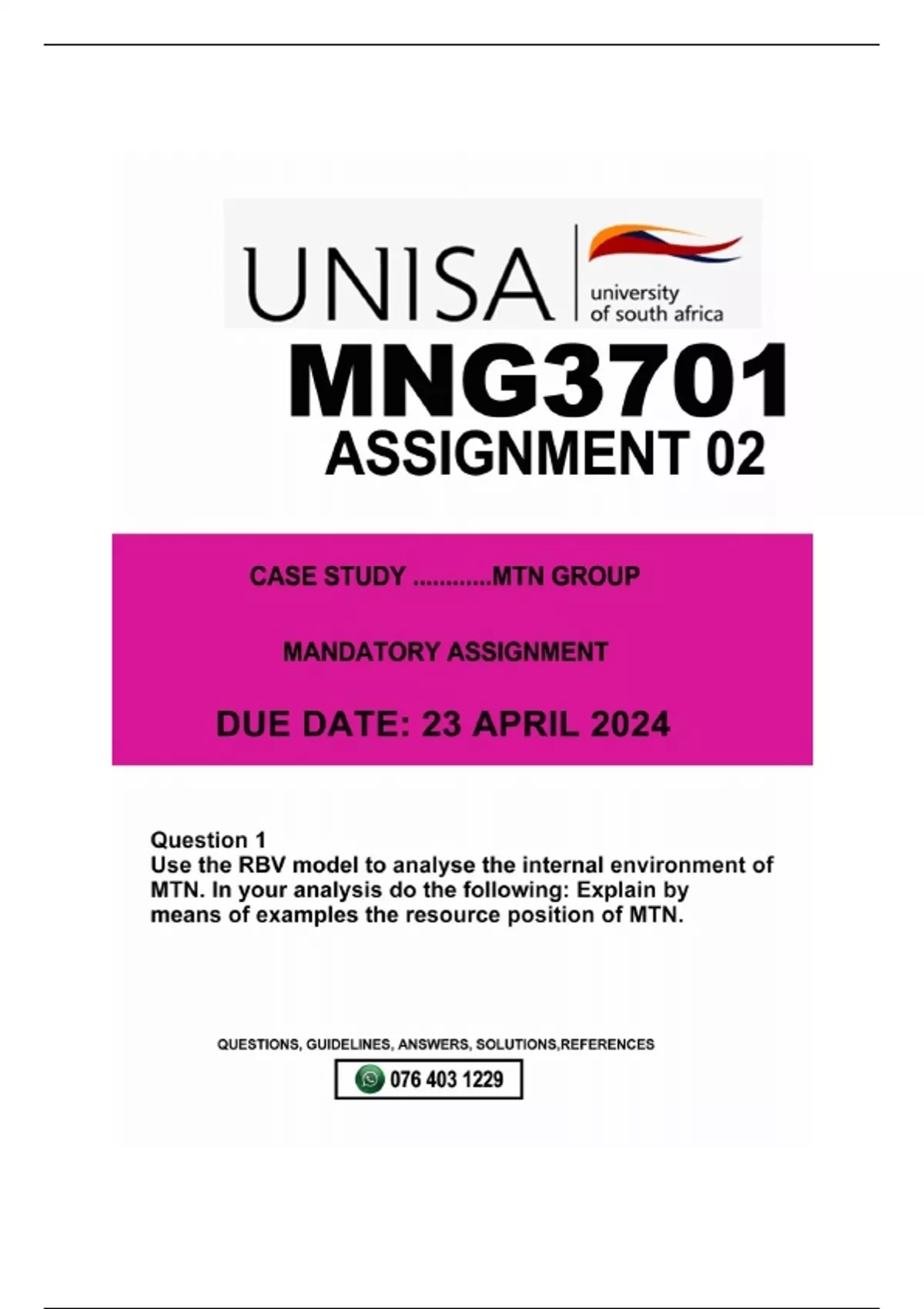 MNG3701 ASSIGNMENT 02 DUE 23APRIL2023