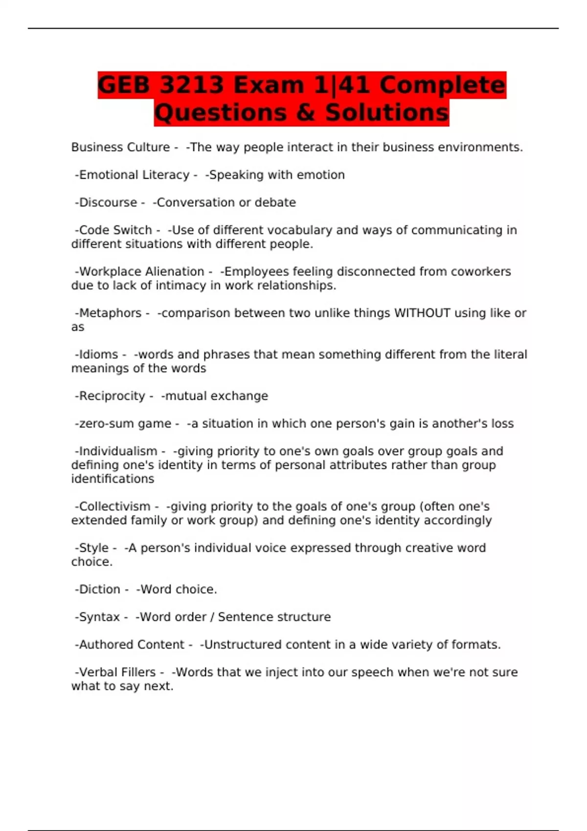 GEB 3213 Exam 1|41 Complete Questions & Solutions