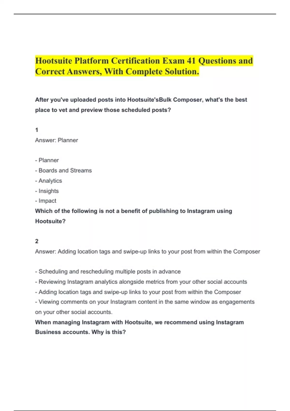 Correct Answers, With Complete Solution.