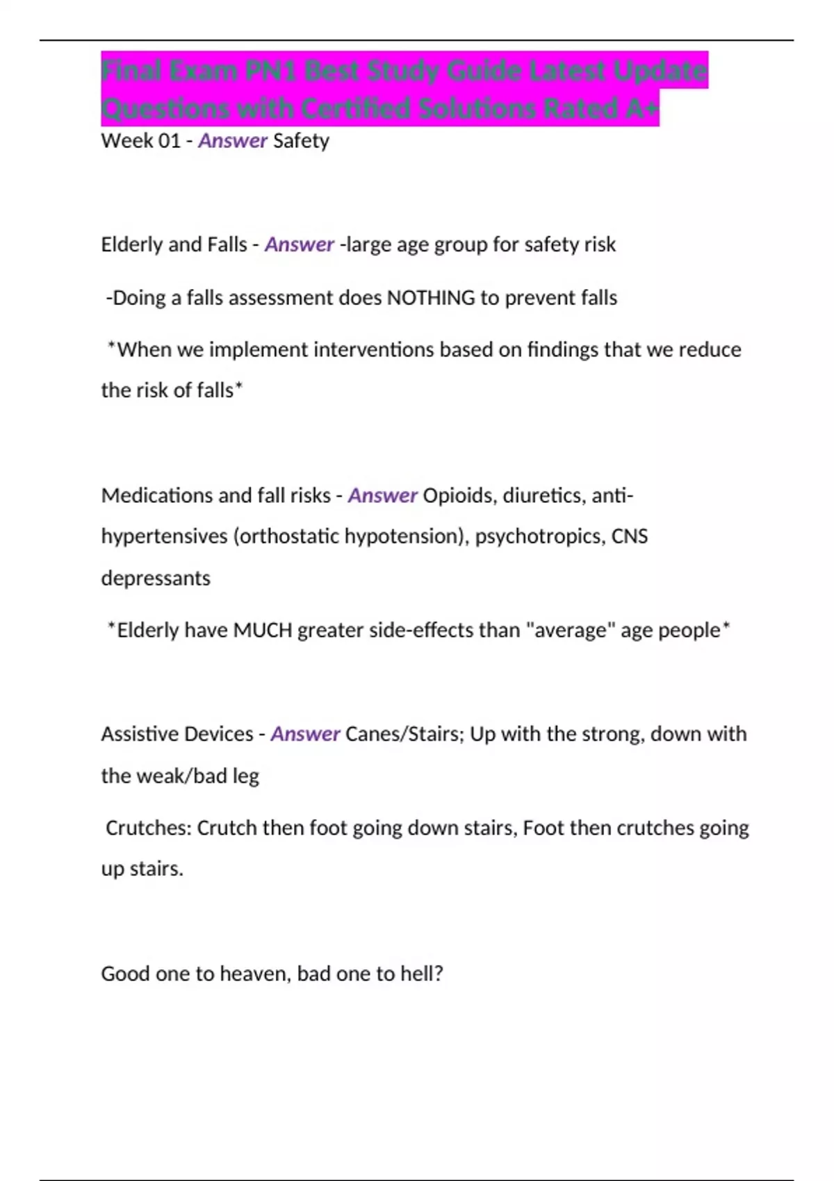 Final Exam PN1 Best Study Guide Latest Update Questions with Certified Solutions Rated A+