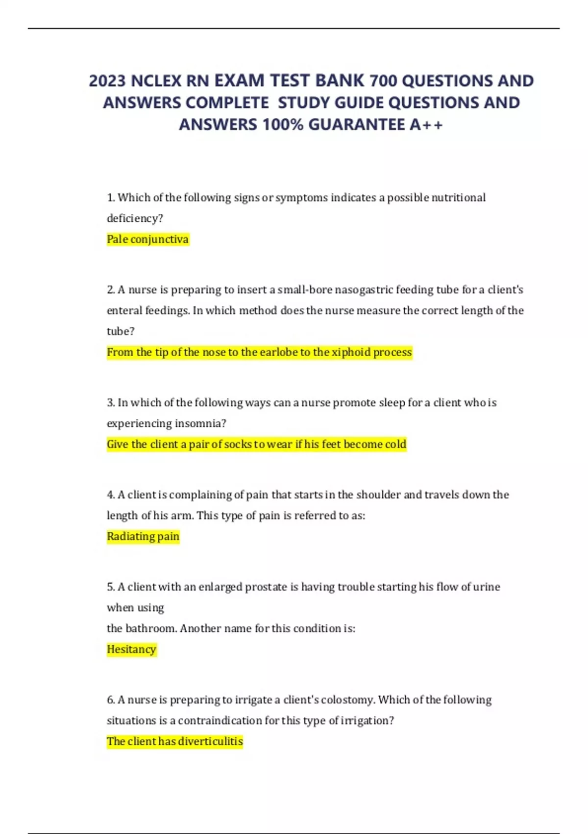 2023 NCLEX RN EXAM TEST BANK 700 QUESTIONS AND ANSWERS COMPLETE STUDY GUIDE QUESTIONS AND ANSWERS 100% GUARANTEE A++