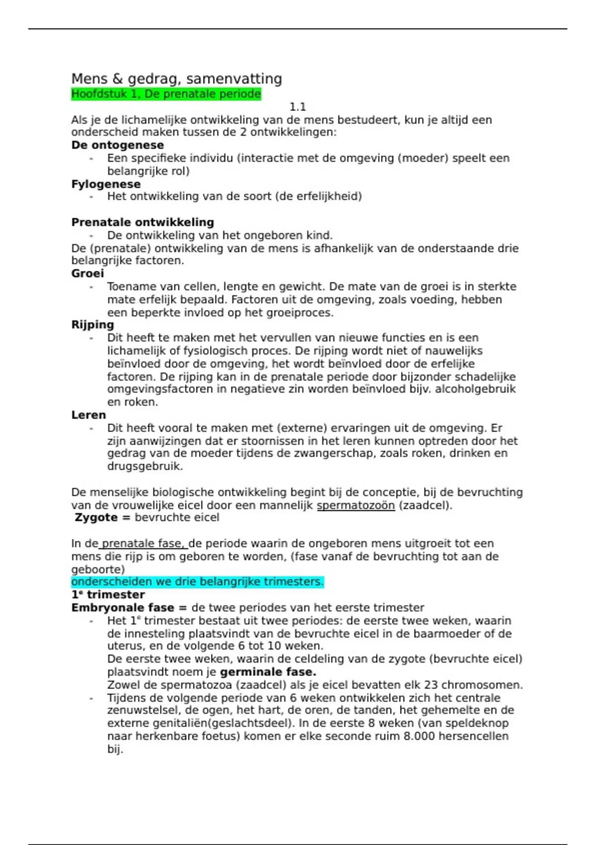 De (prenatale) ontwikkeling van de mens is afhankelijk van de onderstaande drie