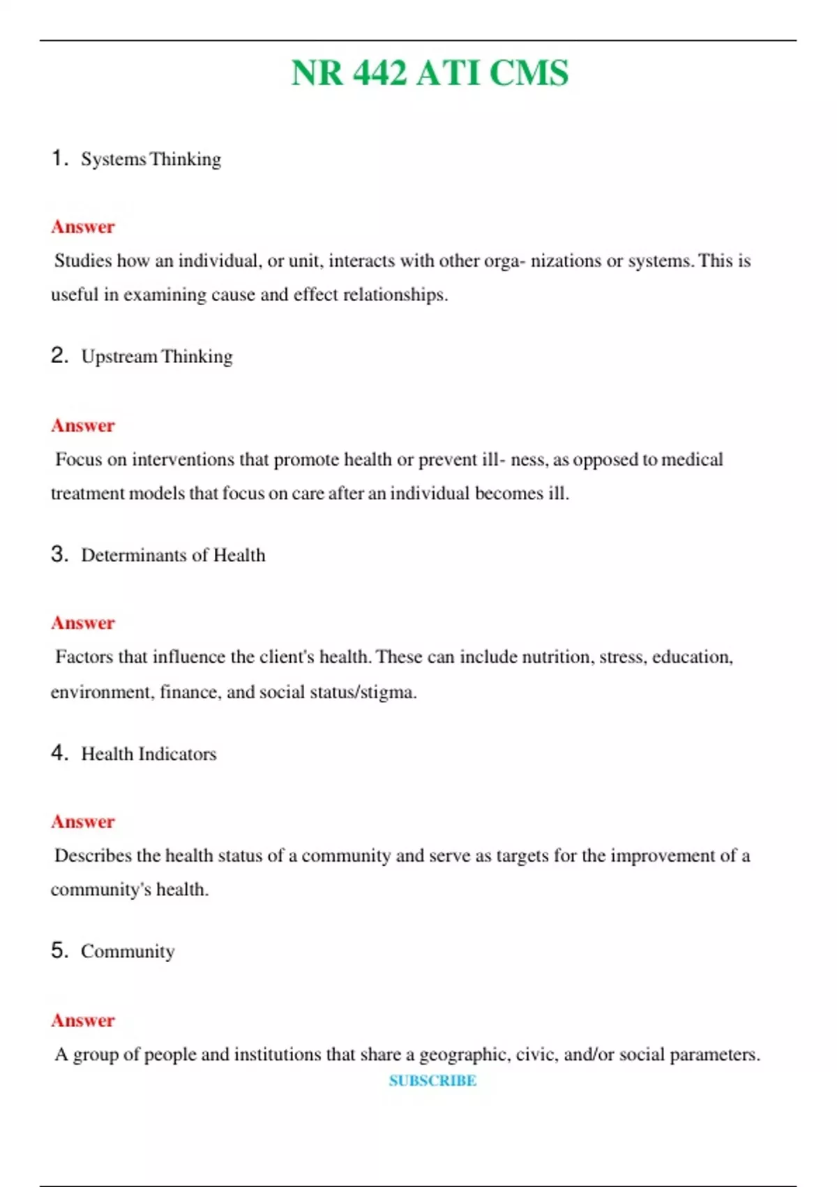 NR 442 ATI CMS (Latest 2024 / 2025) Questions & Answers with rationales