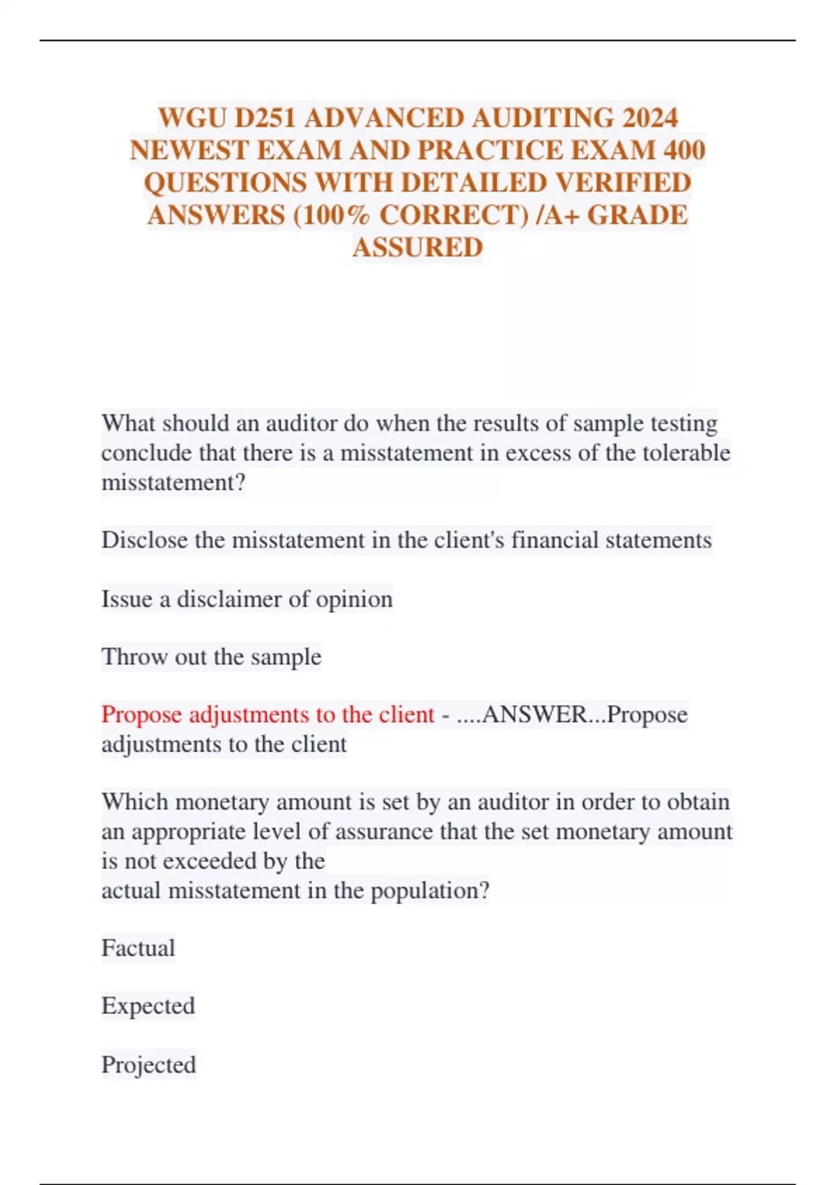 WGU D251 ADVANCED AUDITING 2024 NEWEST EXAM AND PRACTICE EXAM 400 QUESTIONS WITH DETAILED VERIFIED ANSWERS (100% CORRECT) /A+ GRADE ASSURED