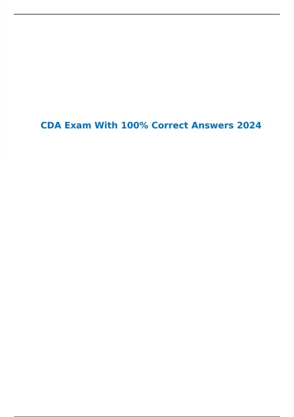 CDA Exam With 100% Correct Answers 2024