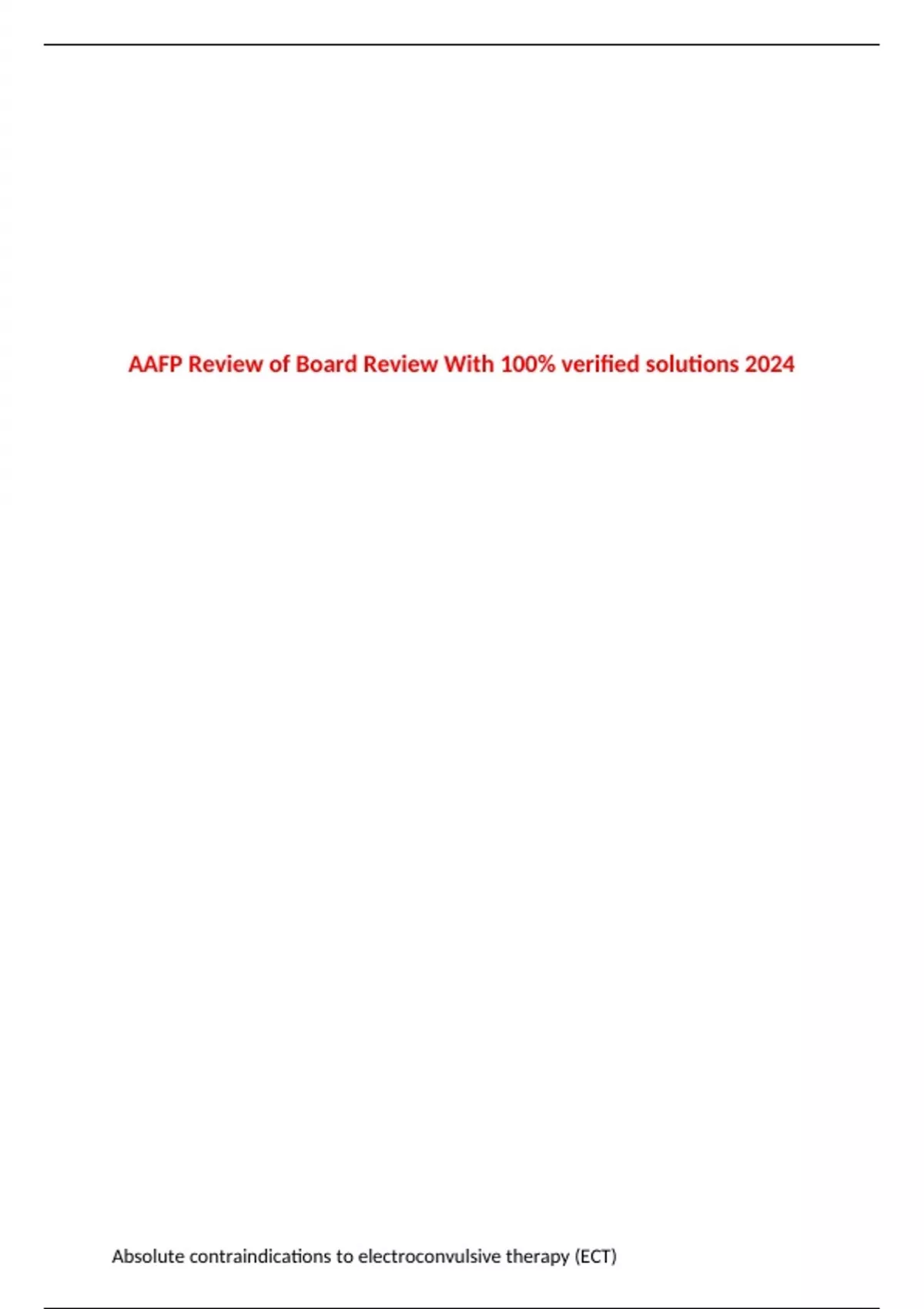 AAFP Review of Board Review With 100% verified solutions 2024 Absolute contraindications to electroconvulsive therapy (ECT) There are no absolute contraindications to ECT