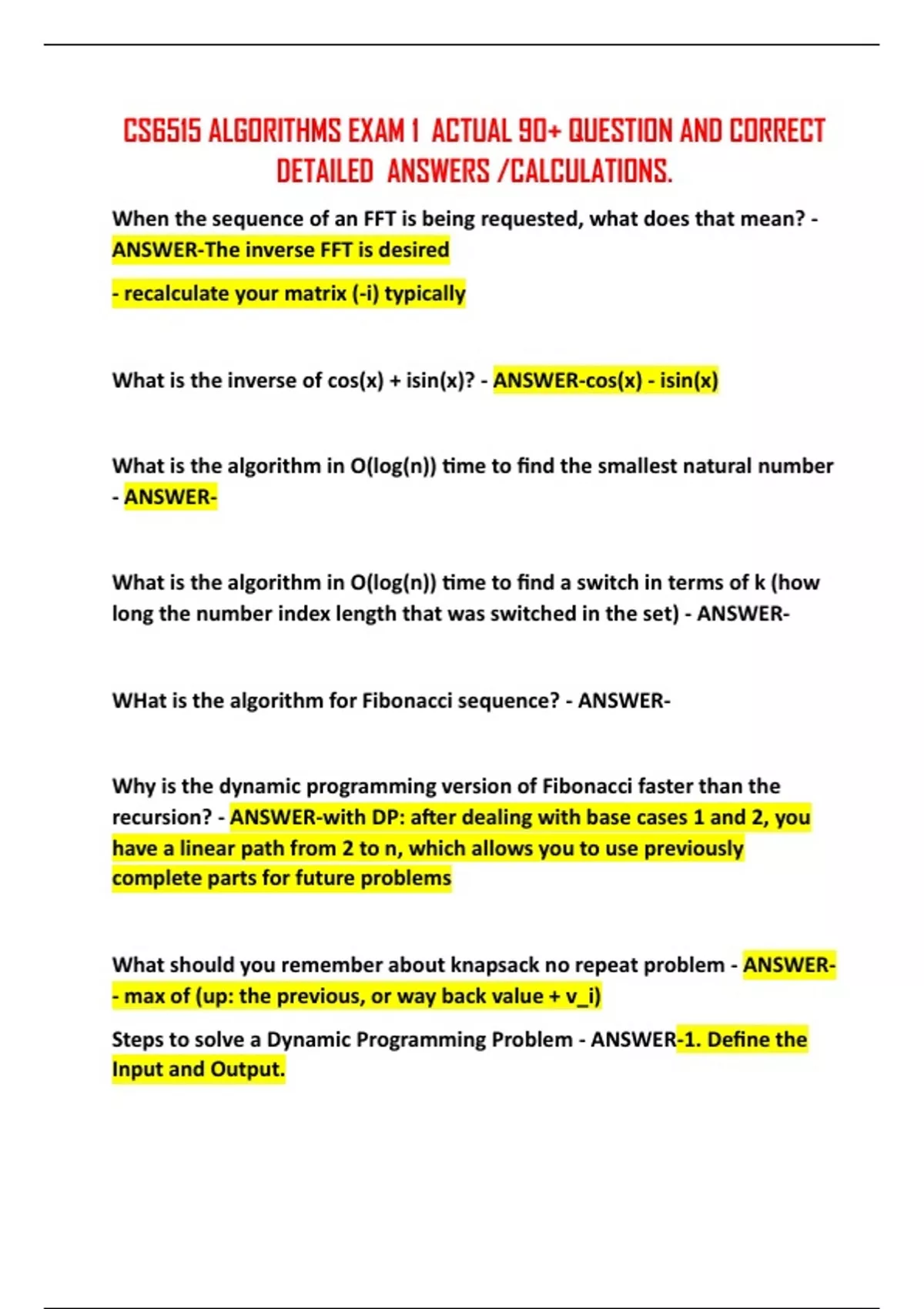 CS6515 ALGORITHMS EXAM 1 ACTUAL 90+ QUESTION AND CORRECT DETAILED ANSWERS /CALCULATIONS.